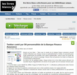 En complément de l’option de téléchargement sur SlideShare, le livre blanc « Twitter conté par 50 personnalités de la banque finance assurance » est désormais accessbile sur la plateforme http://www.leslivresblancs.fr :