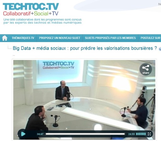 J’en profite pour remettre vers l’émission tournée avec Fabrice Epelboin : « Big Data + média sociaux : pour prédire les valorisations boursières ? »