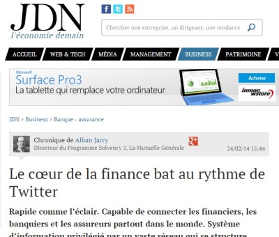 Rapide comme l’éclair. Capable de connecter les financiers, les banquiers et les assureurs partout dans le monde. Système d’information privilégié par un vaste réseau qui se structure rapidement autour de personnalités et d’experts. Twitter se fraye rapidement un chemin dans le monde des professionnels de la finance.