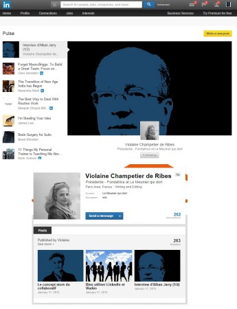 D’habitude, c’est plutôt moi qui « joue » avec Pulse et qui profite de l’espace réservé en haut de la page de profil LinkedIn… Il est amusant (et déroutant) de se retrouver sur la page d’une autre personne … bravo Violaine. Je vous laisse découvrir ce que cela donne 🙂