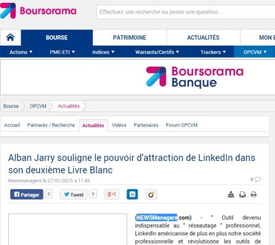 Voici un article de NewsManager via Boursorama sur le Livre blanc « 735 utilisateurs aimantés par LinkedIn » :