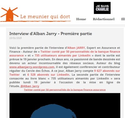 Voici la première partie de l’interview d’Alban JARRY, Expert en Assurance et Finance – Auteur de « Twitter conté par 50 personnalités de la banque finance assurance » et « 735 utilisateurs aimantés par LinkedIn » dont la sortie est prévue le 19 janvier prochain. En deux ans, ce passionné de bande dessinée est devenu un acteur incontournable des réseaux sociaux. Auteur du blog www.albanjarry.wordpress.com, il est également conférencier et contributeur régulier du Cercle des Échos. A ce jour, Alban Jarry compte 9 627 abonnés sur Twitter et 6 528 abonnés sur LinkedIn. La seconde partie de l’interview consacrée au livre blanc « 735 utilisateurs aimantés par LinkedIn » sera publiée lundi 19 janvier à l’occasion de la mise en ligne de l’étude.