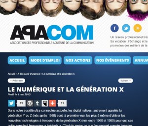 Edwina Carriere vient d’écrire un article très intéressant pour l’association des professionnels aquitains de la communication sur le thème des réseaux sociaux et de la génération X.