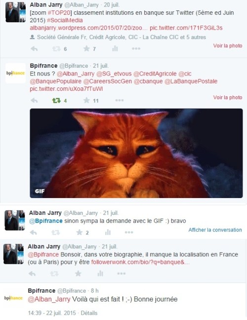 Puis BPI m’envoie une demande « Et nous ? » avec un gif animé avec les autres banques en copie (@SG_etvous @CreditAgricole @cic @BanquePopulaire @CareersSocGen @cbanque @LaBanquePostale)