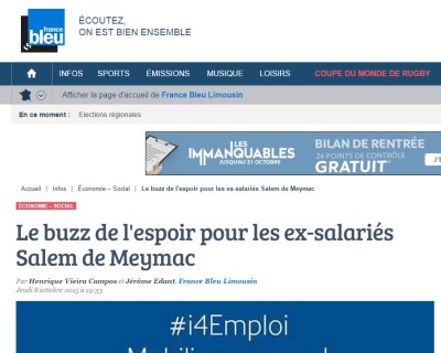 C’est un phénomène totalement inattendu: le réseau Tweeter s’emballe pour trouver un débouché au site pharmaceutique Salem de Meymac, placé en liquidation judiciaire avec ses 37 salariés. Le hashtag « i4jobs » est repris par des centaines de milliers de personnes.