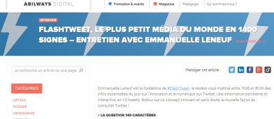 Voici une interview d’Emmanuelle Leneuf sur le Flashtweet qu’elle a créé il y a quelques mois et chaque jours attire de nombreux lecteurs sur Twitter. Elle y parle aussi de #i4Emploi :