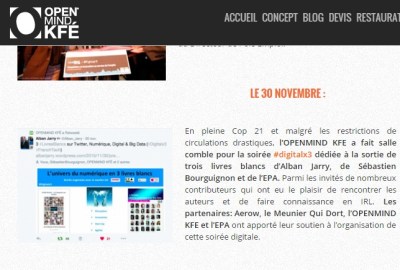 L’Openmind KFE a accueillit la soirée de lancement de 3 livres blancs sur le numérique. Il a aussi organisé 2 autres soirées sur le numérique, retour en images. Encore un grand merci pour l’accueil 🙂