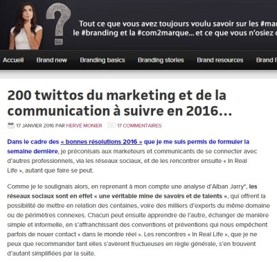 Nous sommes début janvier, à l’heure au rendez vous, Hervé Monier nous livre une nouvelle sélection de Twittos communicants à suivre. Pour plus de facilités pour le lecteur, il nous donne directement accès aux profils cités, abonnez vous à toutes ces pépites la sélection est une nouvelle fois de très bonne facture.