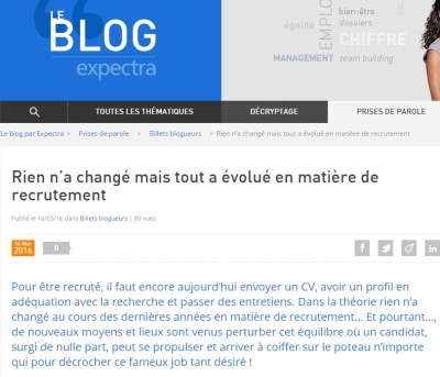Expectra m’a interrogé pour connaitre mon sentiment sur ce qui avait changé en matière de recrutement avec l’émergence des réseaux sociaux. Voici quelques éléments de réponse :
