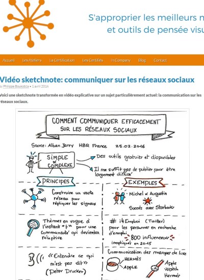 Je remercie Philippe Boukobza qui a transformé l’article « Comment communiquer efficacement sur les réseaux sociaux » écrit pour HBR en une sketchnote. Le résultat est impressionnant 🙂