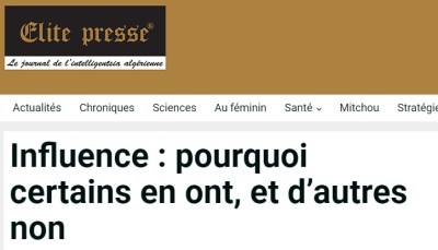 Il est toujours étonnant de voir les rebonds de la diffusion d’une tribune. Ainsi celle ci sur l’influence vient de se retrouver mise en avant sur un site Canadien de « L’intelligentsia Algérienne ». Le monde des médias numériques n’a décidément pas de frontières.