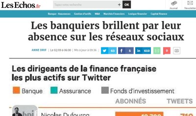 Dans le cadre de l’article d’Anne Drif sur la présence des banquiers sur les réseaux sociaux, j’ai été interrogé pour essayer d’expliquer leur faible présence :