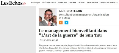Pour lire la suite de l’article : http://www.lesechos.fr/idees-debats/cercle/cercle-160706-le-management-bienveillant-dans-lart-de-la-guerre-de-sun-tsu-2029375.php