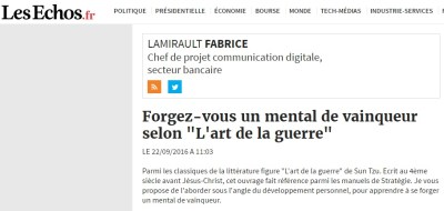 Traiter selon 3 voies différentes l’art de la guerre de Sun Tsu, voici le défi que nous nous sommes lancés avec Gael Chatelain et Fabrice Lamirault. Voici la deuxième partie du triptyque avec le texte de Fabrice orienté sur le développement personnel. A dévorer !