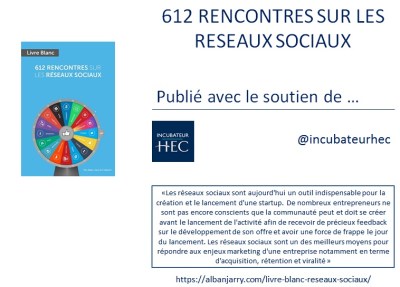Je remercie l’Incubateur d’HEC qui soutien le nouveau livre blanc « 612 rencontres sur les réseaux sociaux ».