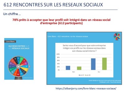 78% seraient prêts à accepter que l’entreprise pour laquelle ils travaillent intègre leurs données de profils dans son réseau social interne. Après avoir conquis le monde de l’internet, les réseaux sociaux disposent de plus en plus d’ambassadeurs qui veulent éviter d’avoir à ressaisir leurs données en double.