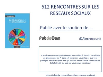 Je remercie Pub de Com qui soutien le nouveau livre blanc « 612 rencontres sur les réseaux sociaux ».