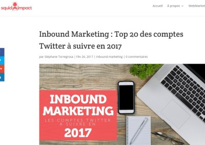 Stéphane Torregrosa a réalisé avec Catherine Cervoni et Brandwatch une étude sur les comptes Twitter les plus influents en inbound marketing. Je les remercie de m’y avoir intégré 🙂