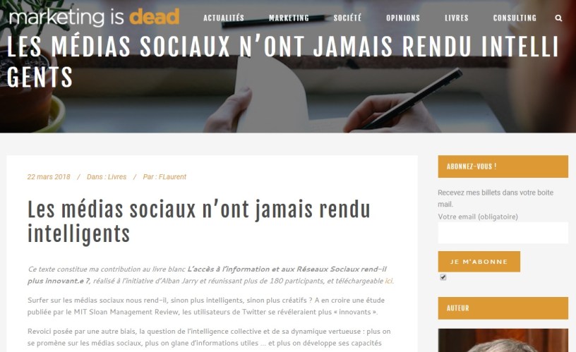 Voici un article publié par François Laurent à l’occasion de la sortie du livre banc « L’accès à l’information et aux Réseaux Sociaux rend-il plus innovant.e ? »