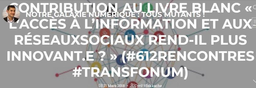 Voici un article publié par Cyril Hlakkache à l’occasion de la sortie du livre banc « L’accès à l’information et aux Réseaux Sociaux rend-il plus innovant.e ? »