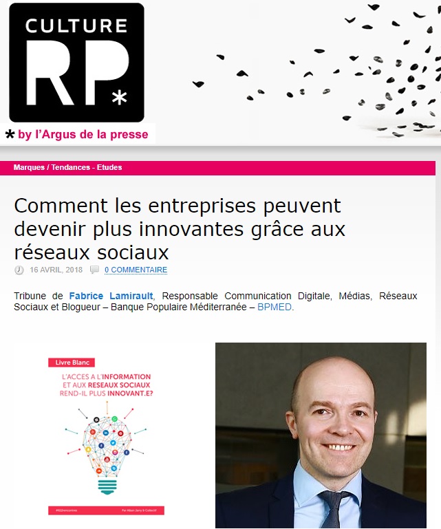 A découvrir le texte de Fabrice Lamirault réalisé pour le livre blanc « L’accès à l’information et aux Réseaux Sociaux rend-il plus innovant.e » et publié par Culture RP :