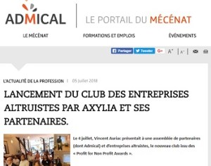 Dans le cadre des Profit for non profit awards qui seront remis en octobre, avait lieu le lancement du club des entreprises altruistes :