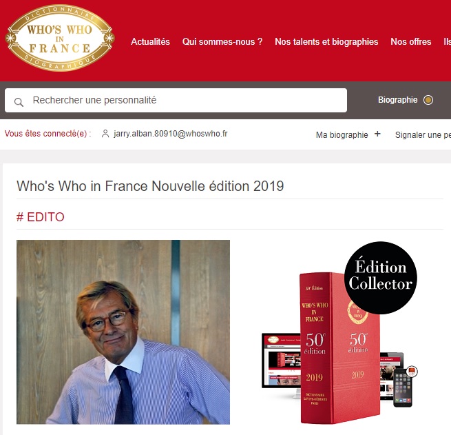 Je suit très honoré d’intégrer cette année le Who’s Who in France à l’occasion de son édition du cinquantenaire :