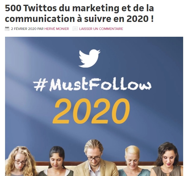 Comme tous les ans, Hervé Monier propose une sélection de twittos à suivre. Une mine d’or de découvertes ! Merci Hervé pour la mention 🙂